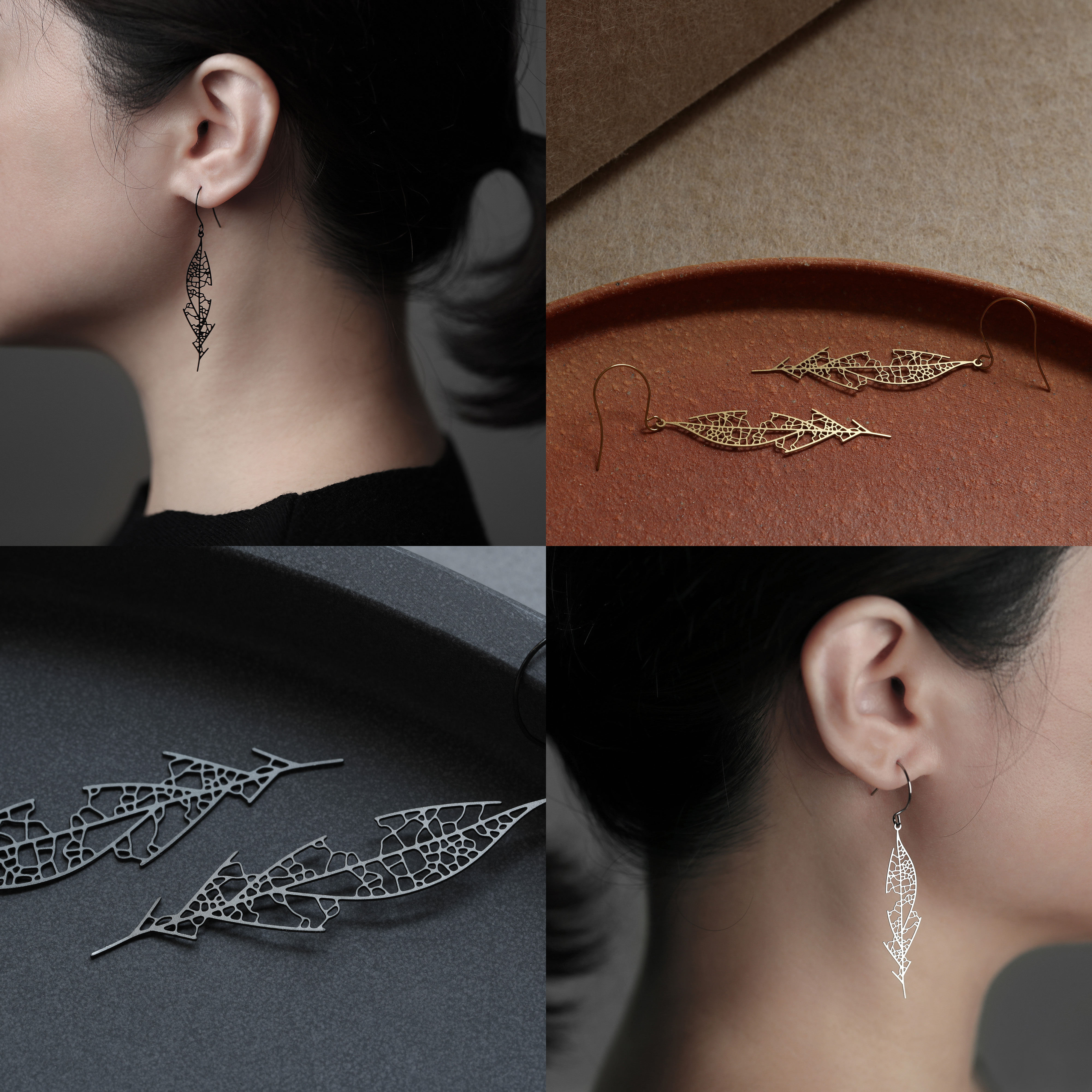 Ginkgo, an ancient plant from two hundred and seventy million years ago, its tenacious vitality is a symbol of eternal incarnation. When wearing it the rhythm is like the fluttering wings of a butterfly.