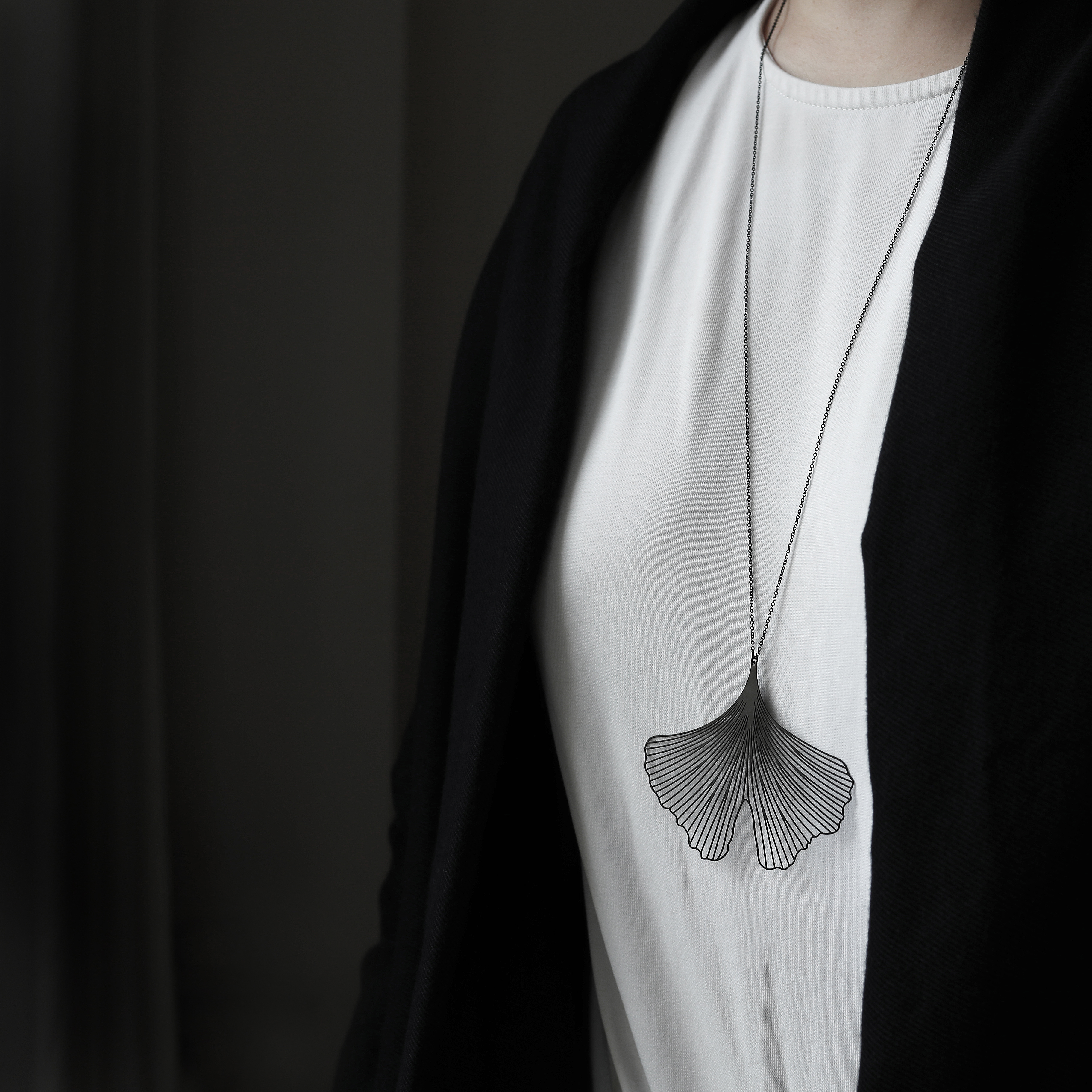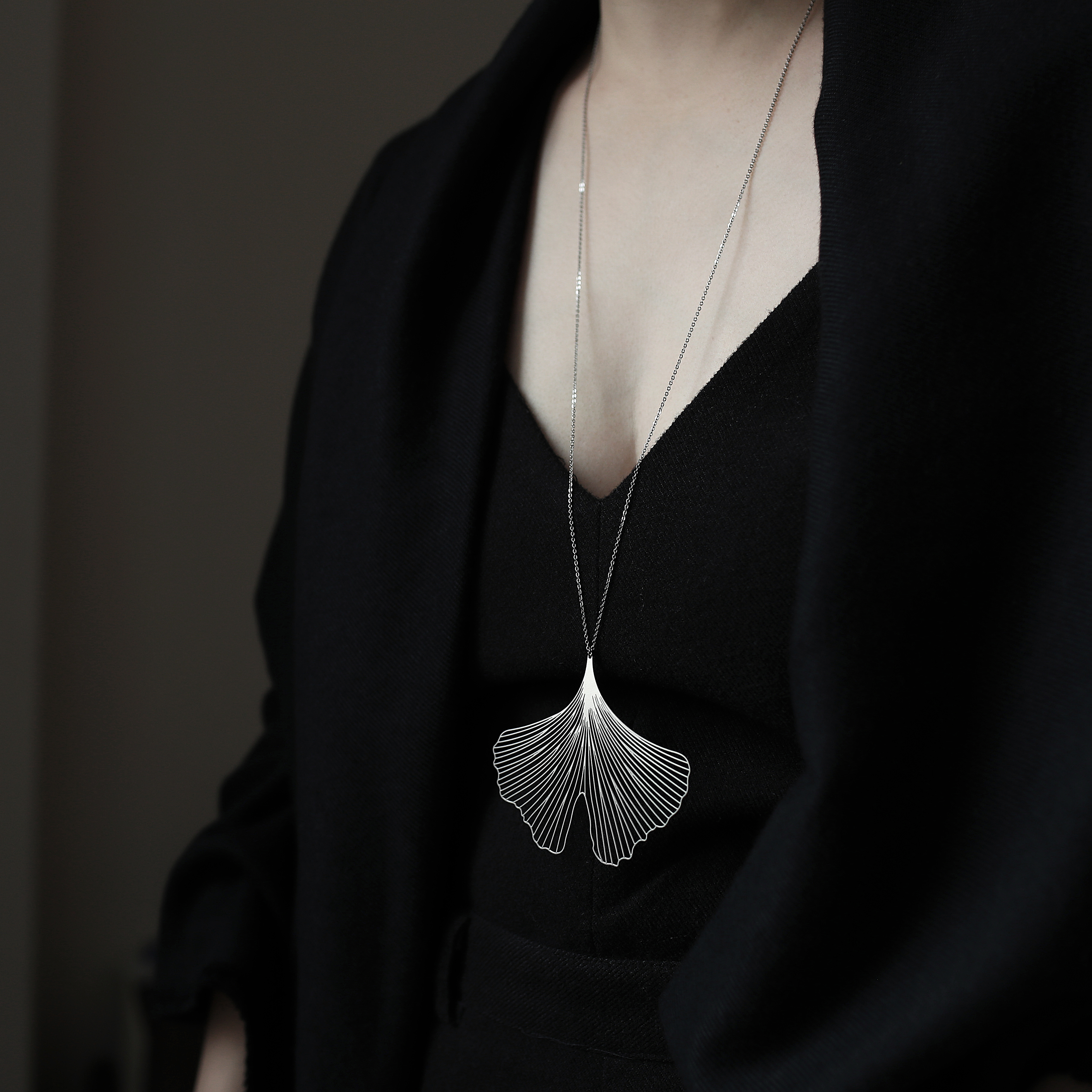 銀杏,來自兩億七千萬年前的古老植物,它堅韌的生命力,象徵永恆的化身,隨著配戴時的律動,有如展翅嘻遊的蝴蝶。