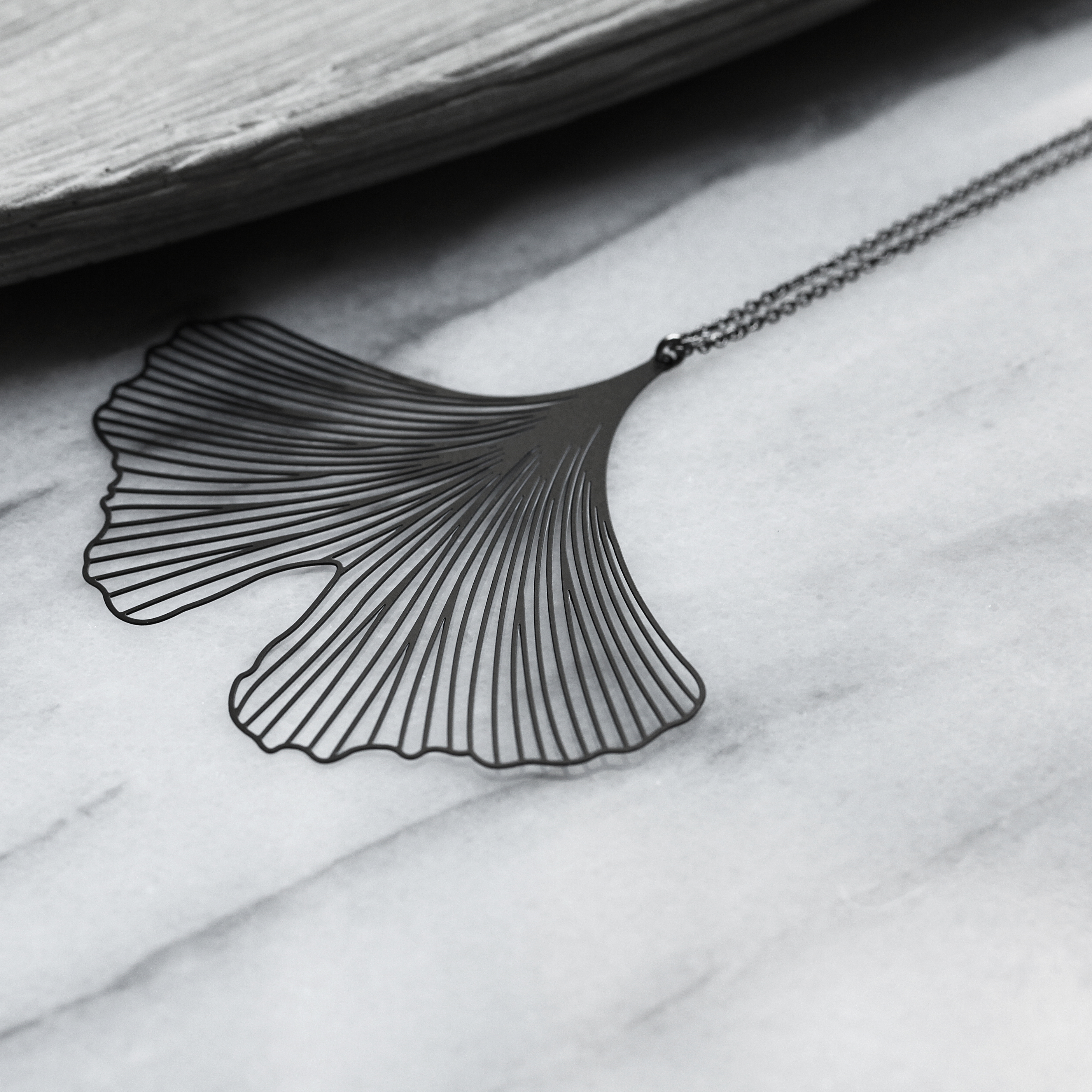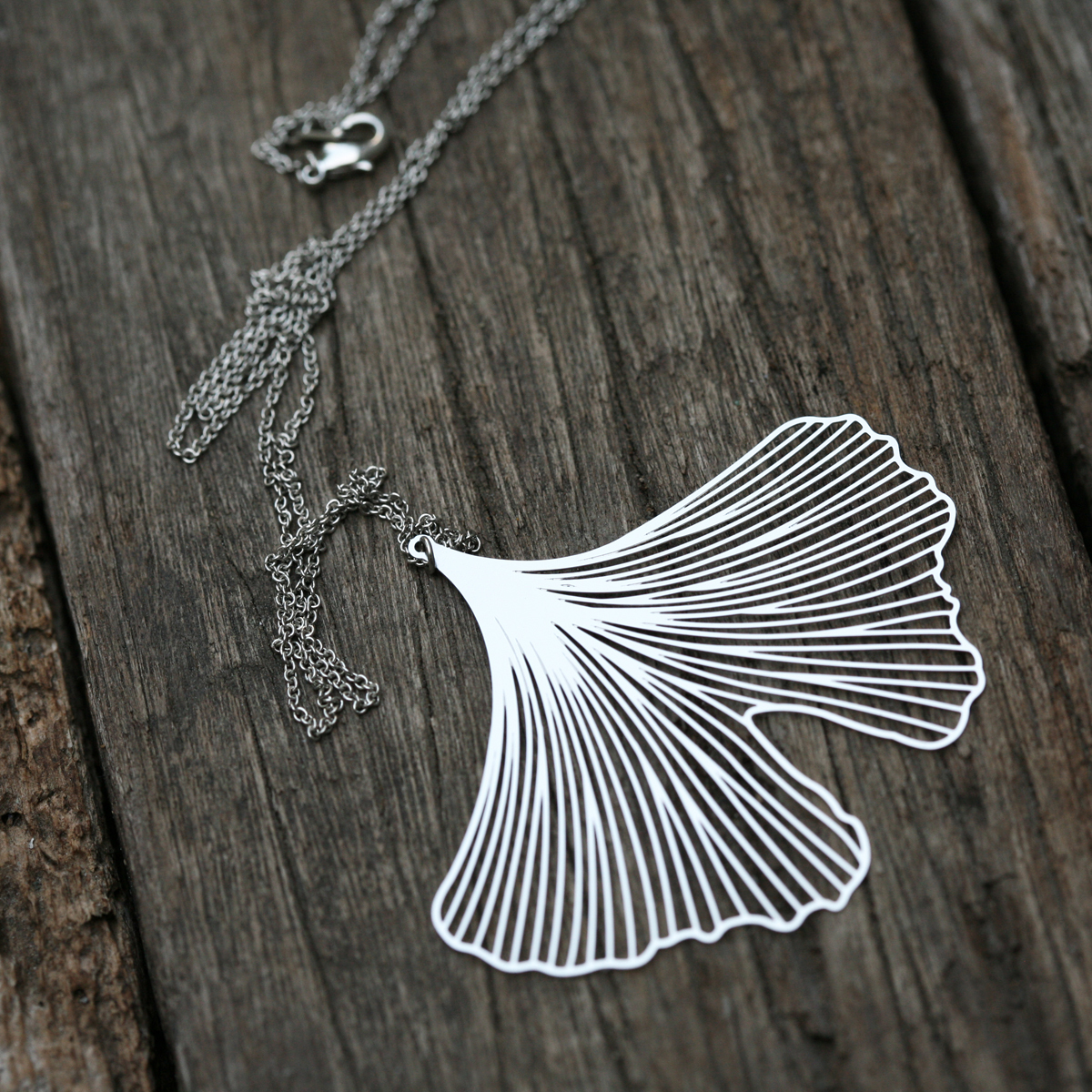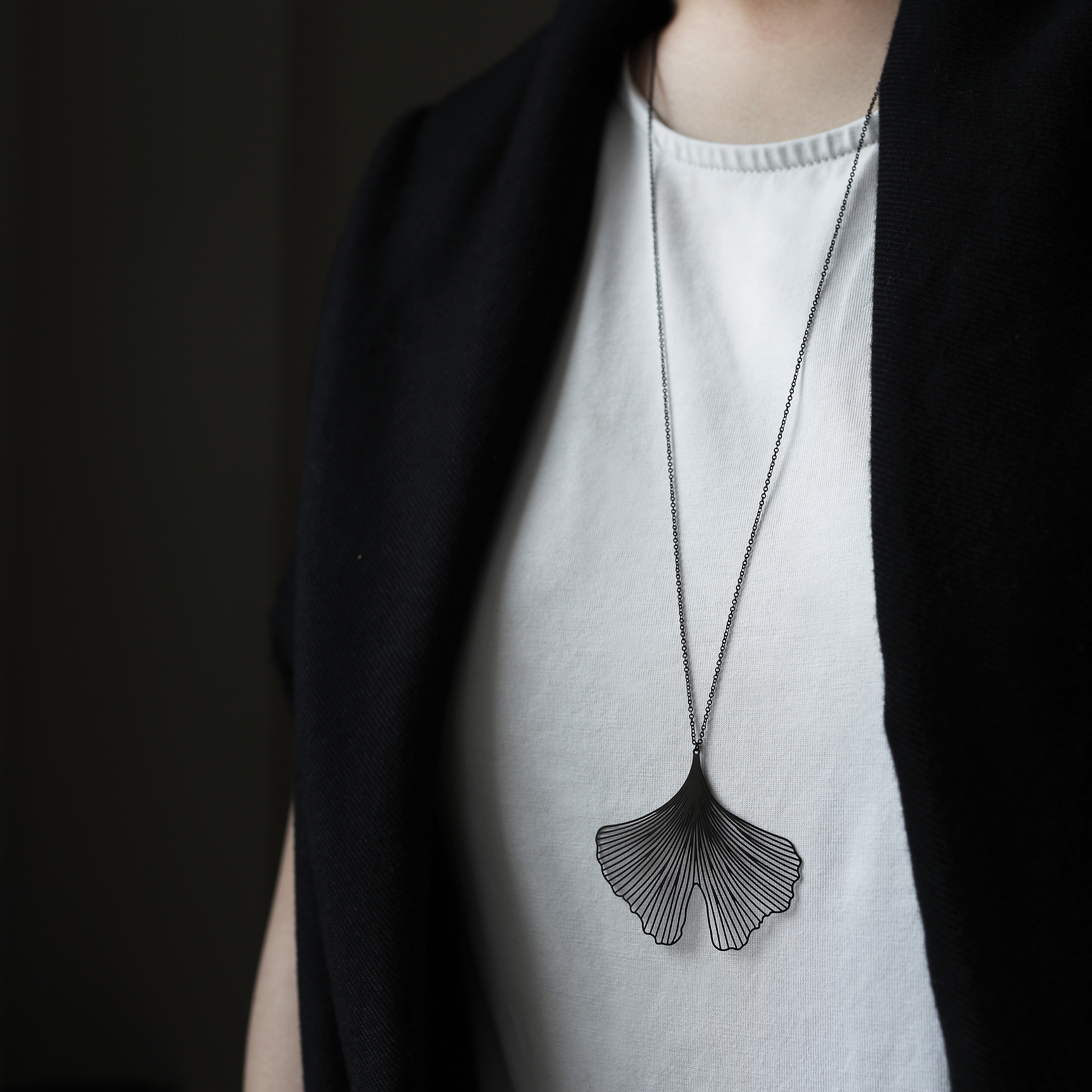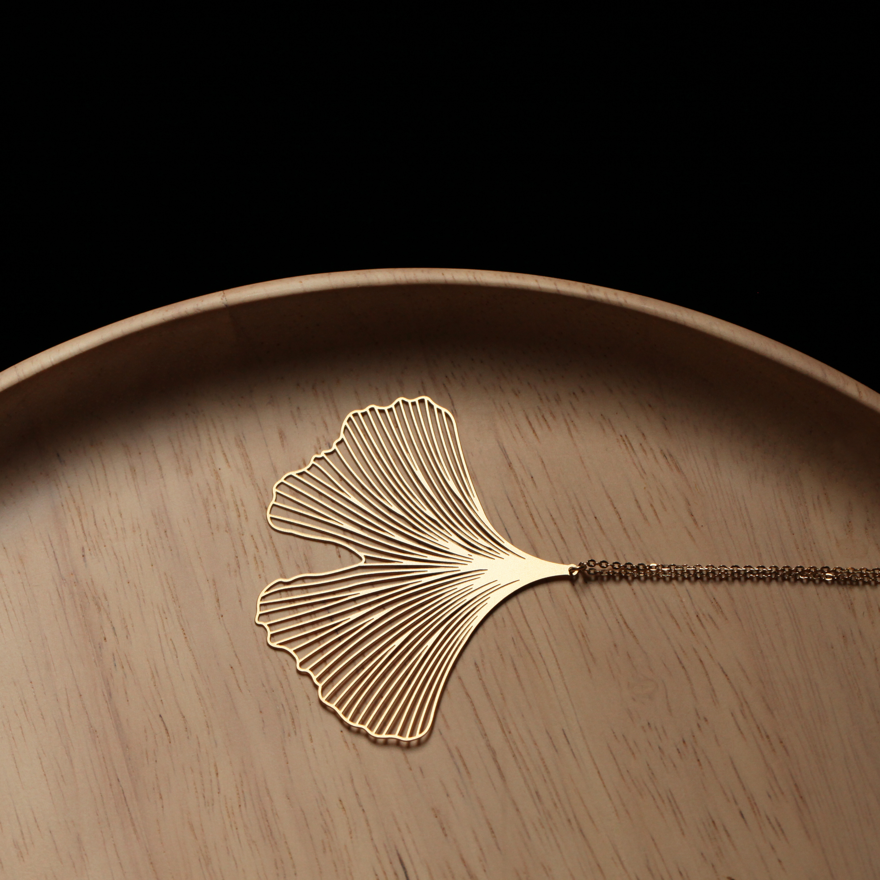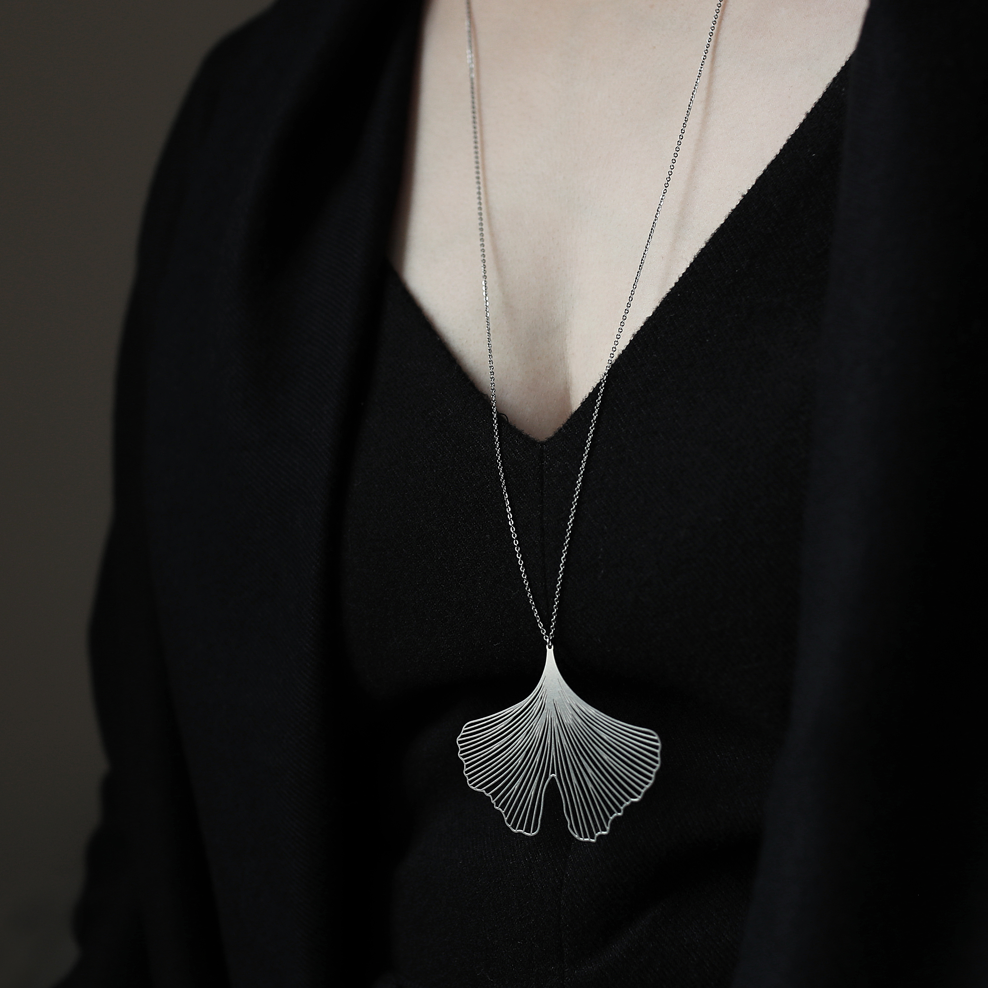 銀杏,來自兩億七千萬年前的古老植物,它堅韌的生命力,象徵永恆的化身,隨著配戴時的律動,有如展翅嘻遊的蝴蝶。