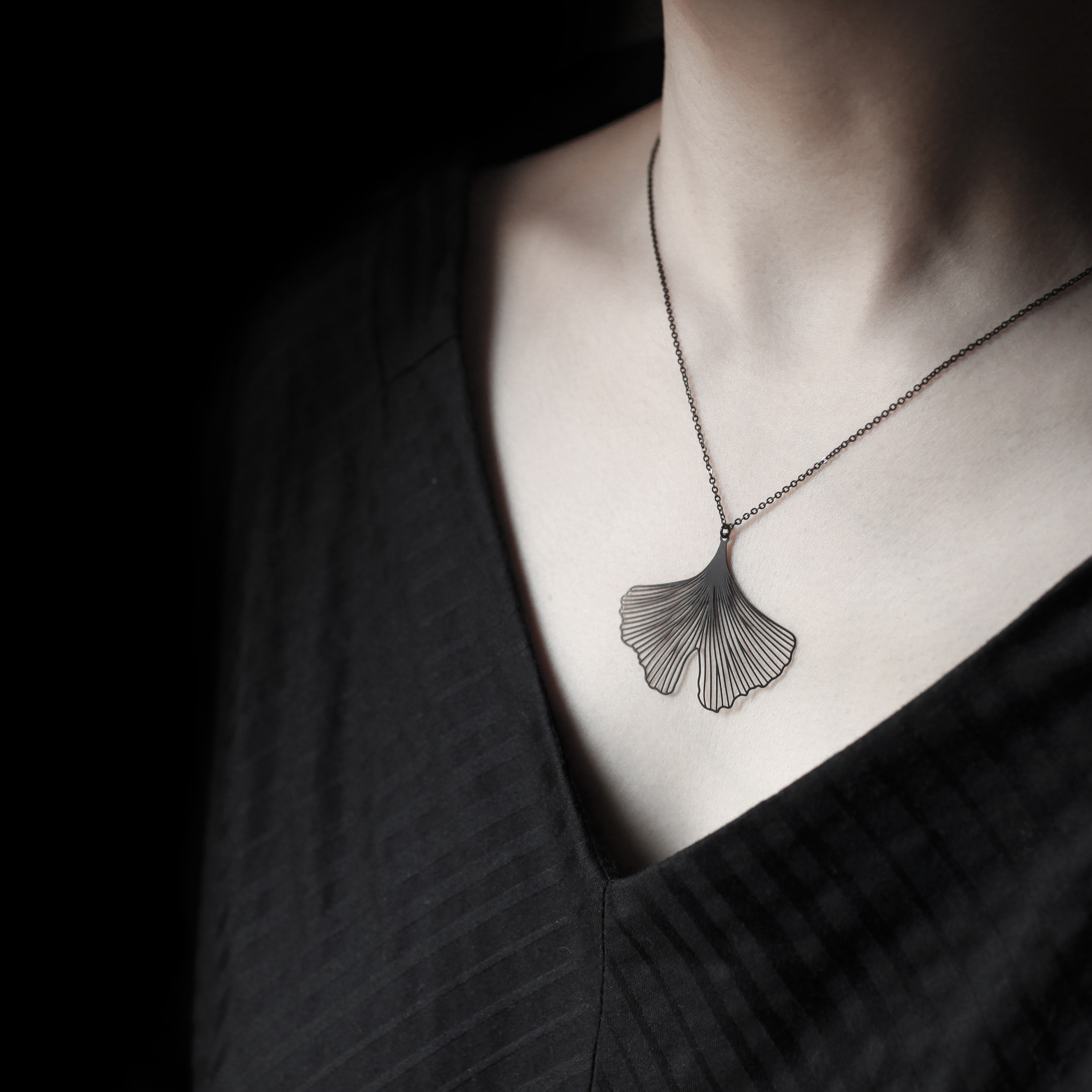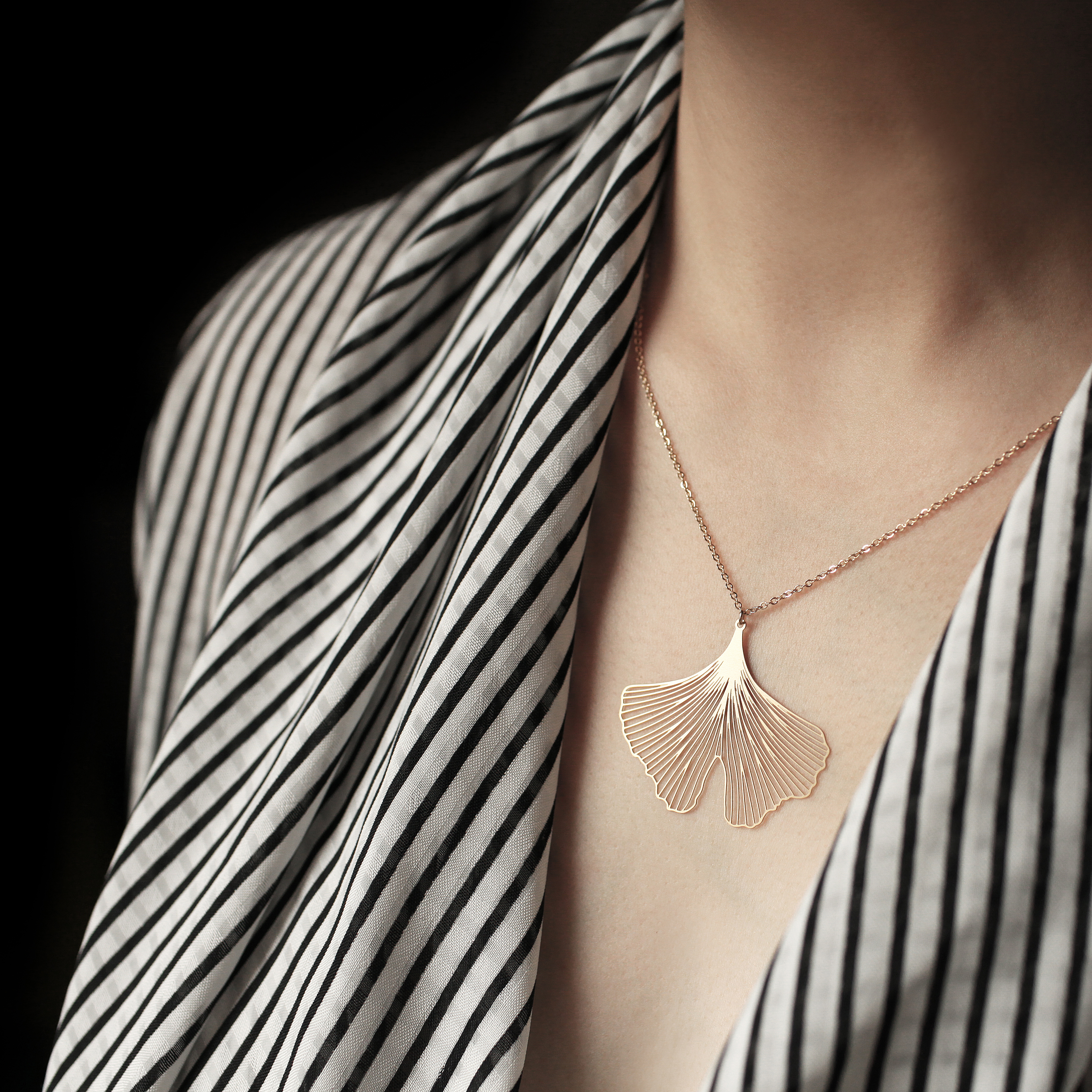 銀杏,來自兩億七千萬年前的古老植物,它堅韌的生命力,象徵永恆的化身,隨著配戴時的律動,有如展翅嘻遊的蝴蝶。