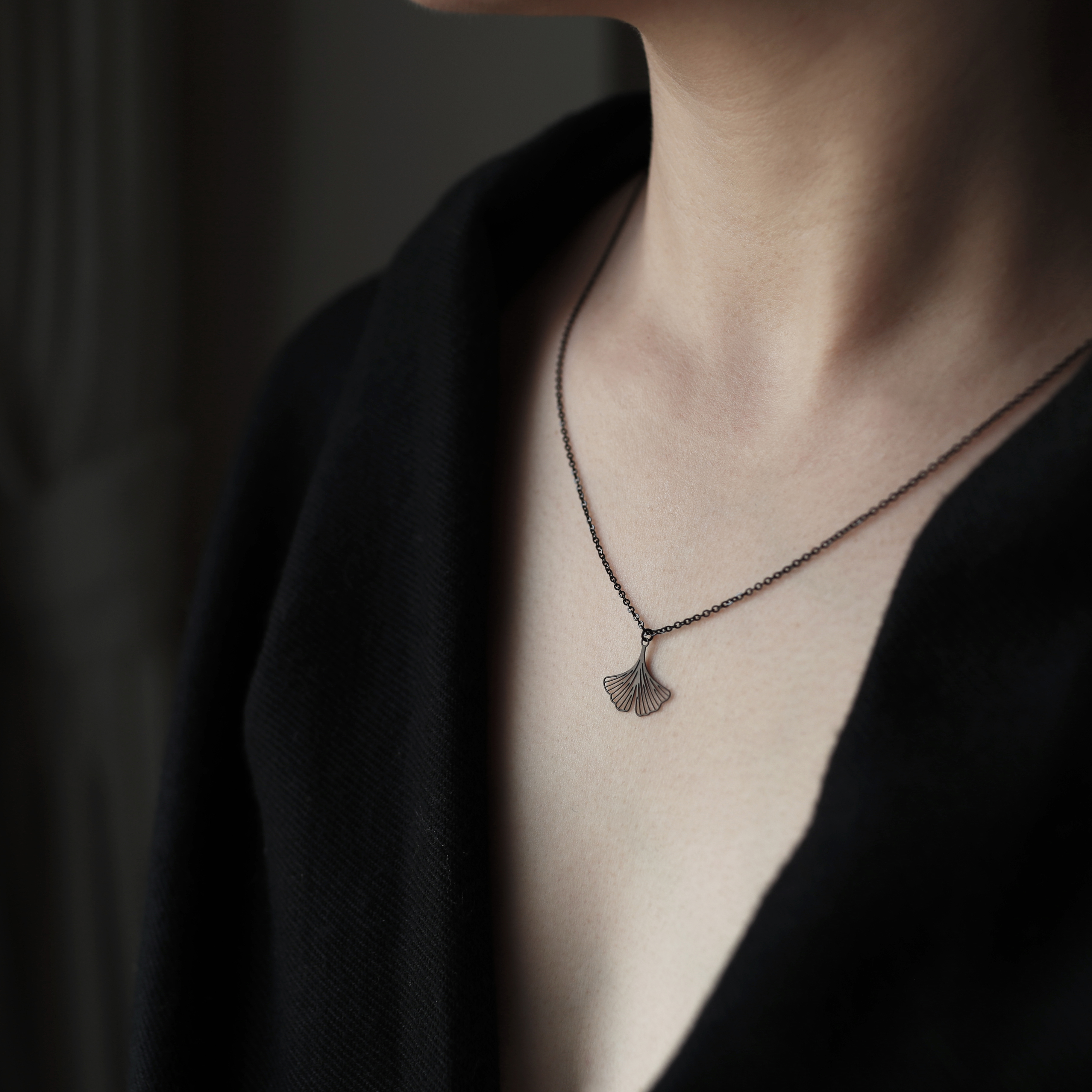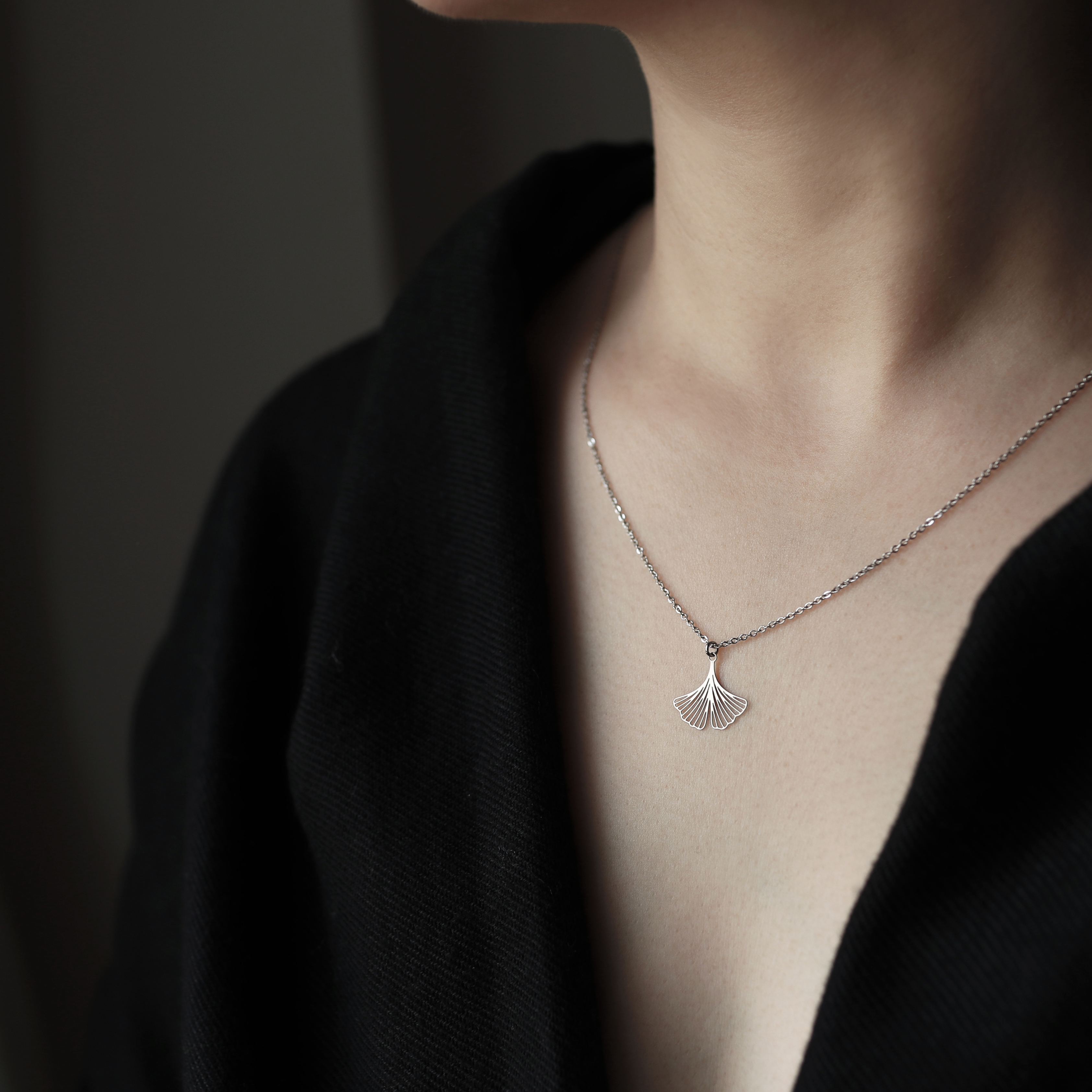 銀杏,來自兩億七千萬年前的古老植物,它堅韌的生命力,象徵永恆的化身,隨著配戴時的律動,有如展翅嘻遊的蝴蝶。